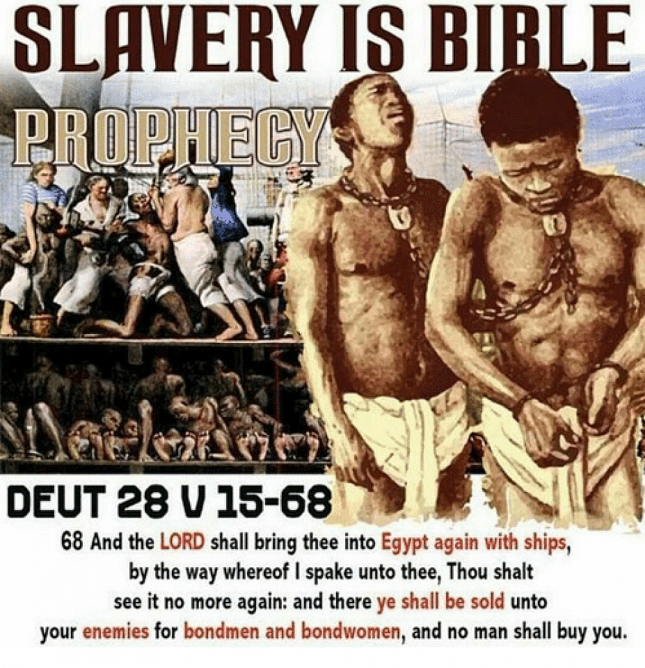 Er is een bevolkingsgroep op aarde die de vloek(en) van Deuteronomium 27 letterlijk ondergaan heeft. Zij zijn in grote massa's weggevoerd in schepen en hebben letterlijk ijzeren jukken om hun hals gehad. Heel anders dan de ‘blanke joden’, die juist overal waar zij maar kwamen voorspoedig waren en zodoende de afgunst opriepen, zijn er massa's donkere mensen geweest die letterlijk Deuteronomium 27 aan den lijve hebben ervaren.